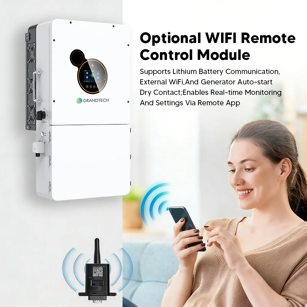 Kompatibel mit Lithium-Ionen- und Blei-Säure-Batterien mit einer Ladekapazität von bis zu 240 A bietet er flexible Energiespeicherung. Ausgestattet mit einem integrierter Sicherungsschalter und bypass-Strom von bis zu 200 A , zusammen mit reinem Sinuswellenausgang und IP65-Schutz unterstützt der Wechselrichter den Parallelbetrieb von bis zu sechs Einheiten und liefert zuverlässige und skalierbare Stromversorgung für Haushalte, landwirtschaftliche Betriebe und abgelegene Anlagen.