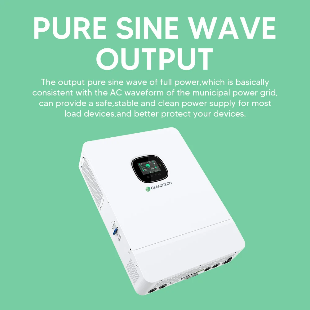 Funciona con baterías de litio-ión y de plomo-ácido de 48 V, admite comunicación con el sistema de gestión de baterías (BMS) y la función de horarios programados.