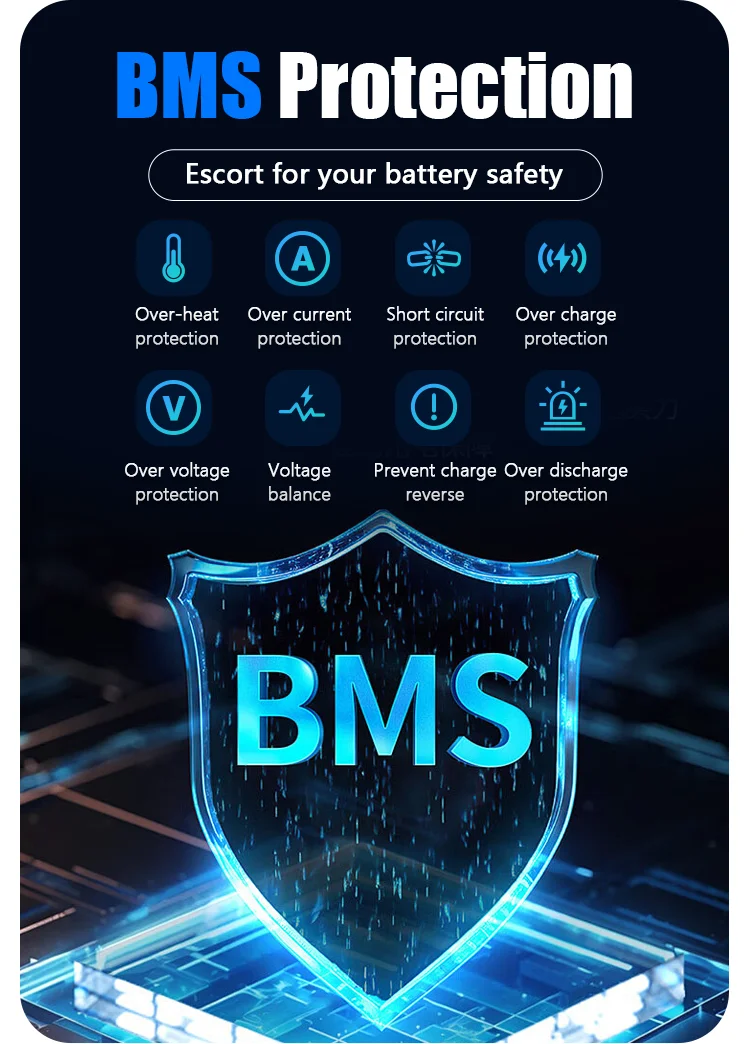 BMS Smart Integrato: Dotata di un avanzato Sistema di Gestione della Batteria, che fornisce molteplici livelli di protezione e funzioni di comunicazione per un monitoraggio e un controllo efficienti.