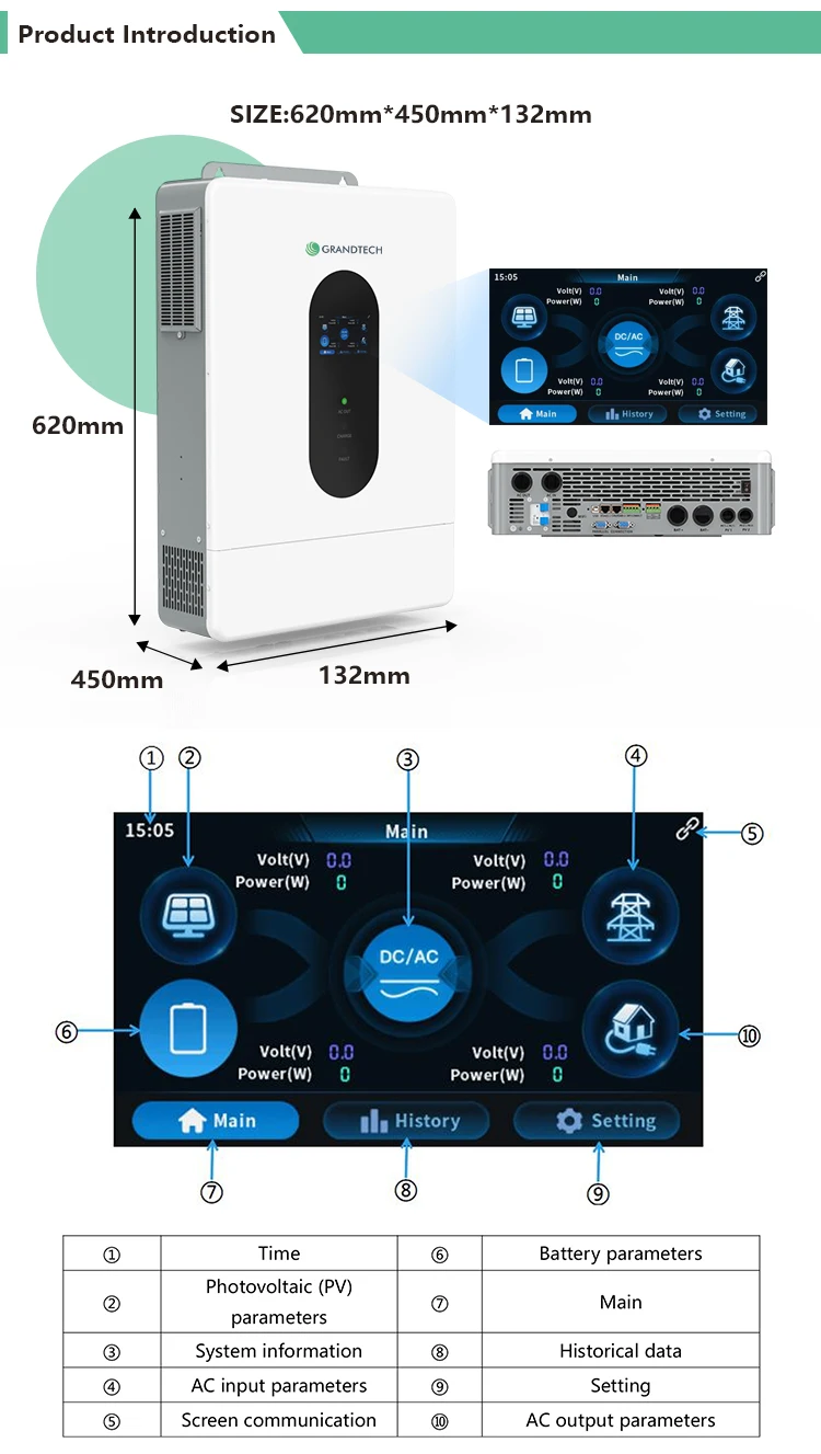 40.0Vdc~58.6Vdc±0.6Vdc (התראת מתח נמוך/מתח כיבוי/מתח גבוה מידי התראה/שחזור ממתח גבוה. ניתן לקבוע במסך LCD) |