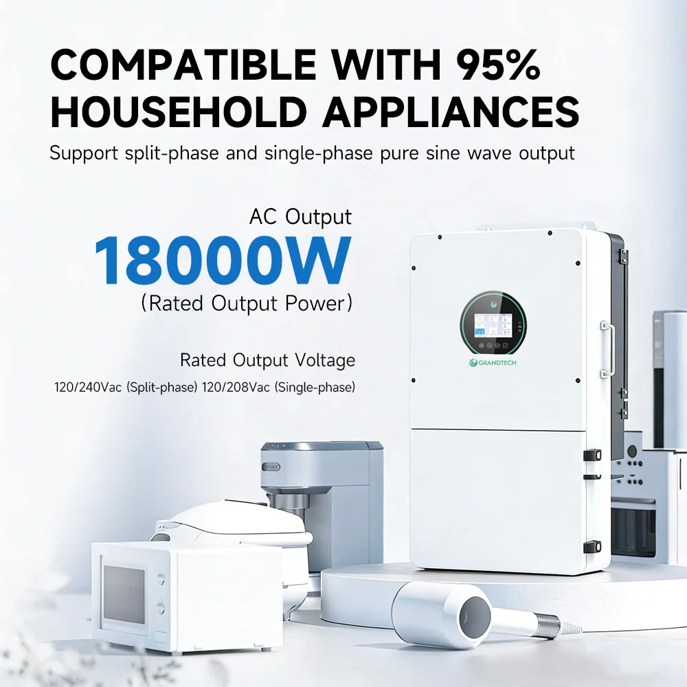 5年保証付き:48ボルト 18,000ワット スプリットフェーズインバータ(12kW/8kW/15kW/16kW/18kW、120V/240V対応)、米国仕様太陽光ハイブリッドインバータ