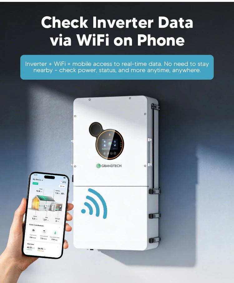 Inverteris suderinamas su ličio jonų ir švinų rūgšties akumuliatoriais ir palaiko BMS ryšį, užtikrindamas saugų ir efektyvų akumuliatorių valdymą.