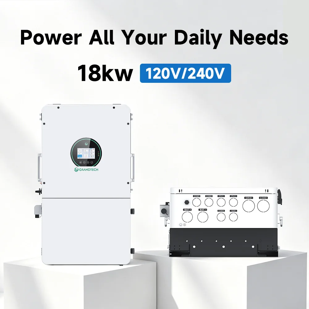 Falownik hybrydowy SRNE zgodny z normą UL1741, moc 18 kW / 16 kW / 15 kW, dwufazowy, przeznaczony na rynek Ameryki Północnej, napięcie 120 V / 240 V, obsługa trybów on-grid i off-grid, falownik hybrydowy z funkcją MPPT