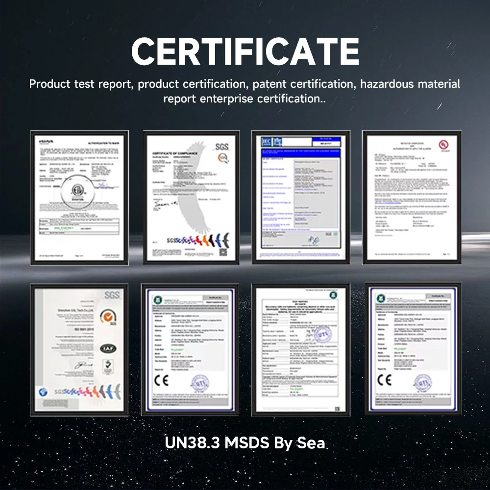 UL1973,UL9540,UL9540A,ETL,ISO etc... We are ability to make the fast delivery to our clients in USA, as we have a warehouse in California, USA. We strive to provide our clients with high quality products, good service, timely delivery and competitive prices and look forward to cooperating with you.
