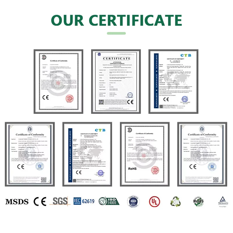 UL1973,UL9540,UL9540A,ETL,ISO etc... We are ability to make the fast delivery to our clients in USA, as we have a warehouse in California, USA. We strive to provide our clients with high quality products, good service, timely delivery and competitive prices and look forward to cooperating with you.