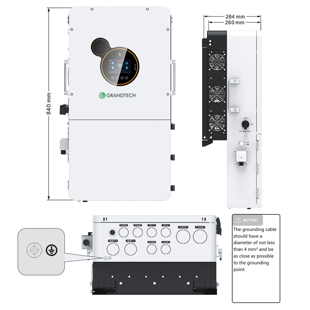 Grandtech, inversor hibrid 3 kW, 4 kW, 5 kW, 6 kW, 8 kW, 10 kW, 12 kW, fază divizată, inversor solar hibrid conectat la rețea, 12 kW
