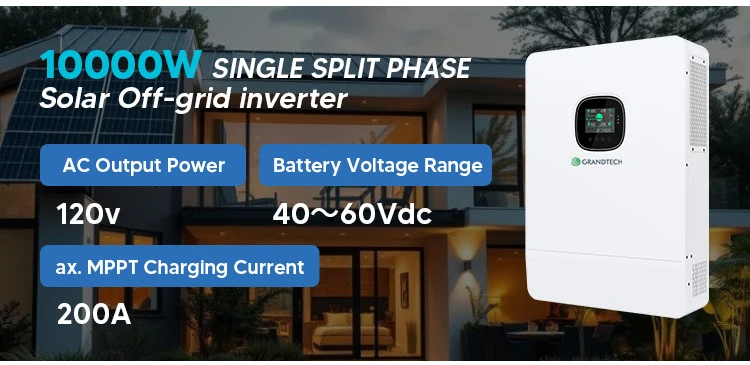 Nagbibigay ito ng 10,000W na rated na kapangyarihan (20,000W peak) na may pure sine wave output sa 120V single-phase / 240V split-phase. Ang sistema ay sumusuporta sa 48V Li-ion at lead-acid na baterya na may hanggang 200A na charging current. Kasama nito ang dalawang MPPT (5,500W + 5,500W, 99.9% na kahusayan) at maximum na 500V PV input, na nagpapagarantiya ng mataas na solar performance.