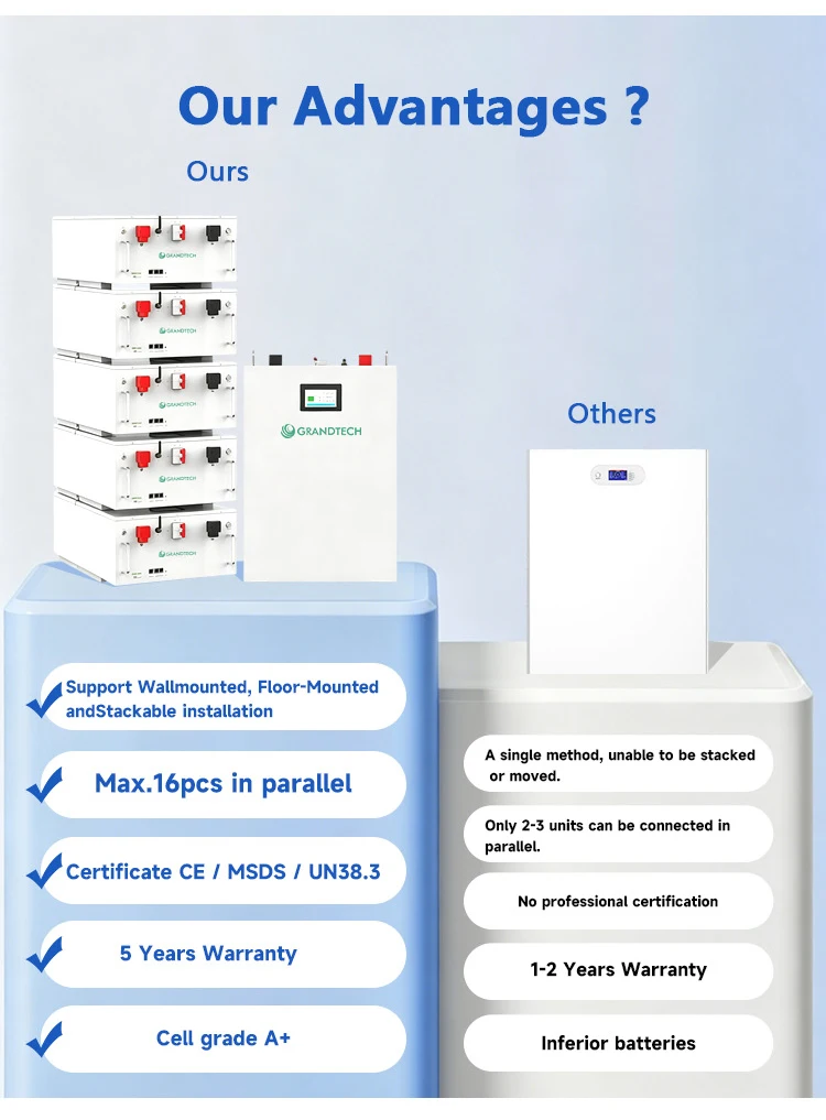 Компанія SICHUAN GRANDTECH NEW ENERGY TECHNOLOGY CO. LTD. є професійним постачальником у сфері акумулювання сонячної енергії. Ми спеціалізуємося на виробництві та маркетингу високоякісних сонячних інверторів та акумуляторів для зберігання енергії, які сертифіковані відповідно до стандартів IEC62619, UL1741 (SA&SB), UL1973, UL9540, UL9540A, ETL, ISO тощо. Завдяки наявності складів у Каліфорнії та Польщі ми здатні забезпечувати швидку доставку нашим клієнтам у США та країнах Європи. Ми прагнемо надавати клієнтам високоякісну продукцію, добре обслуговування, своєчасну доставку та конкурентоспроможні ціни й чекаємо на співпрацю з вами.