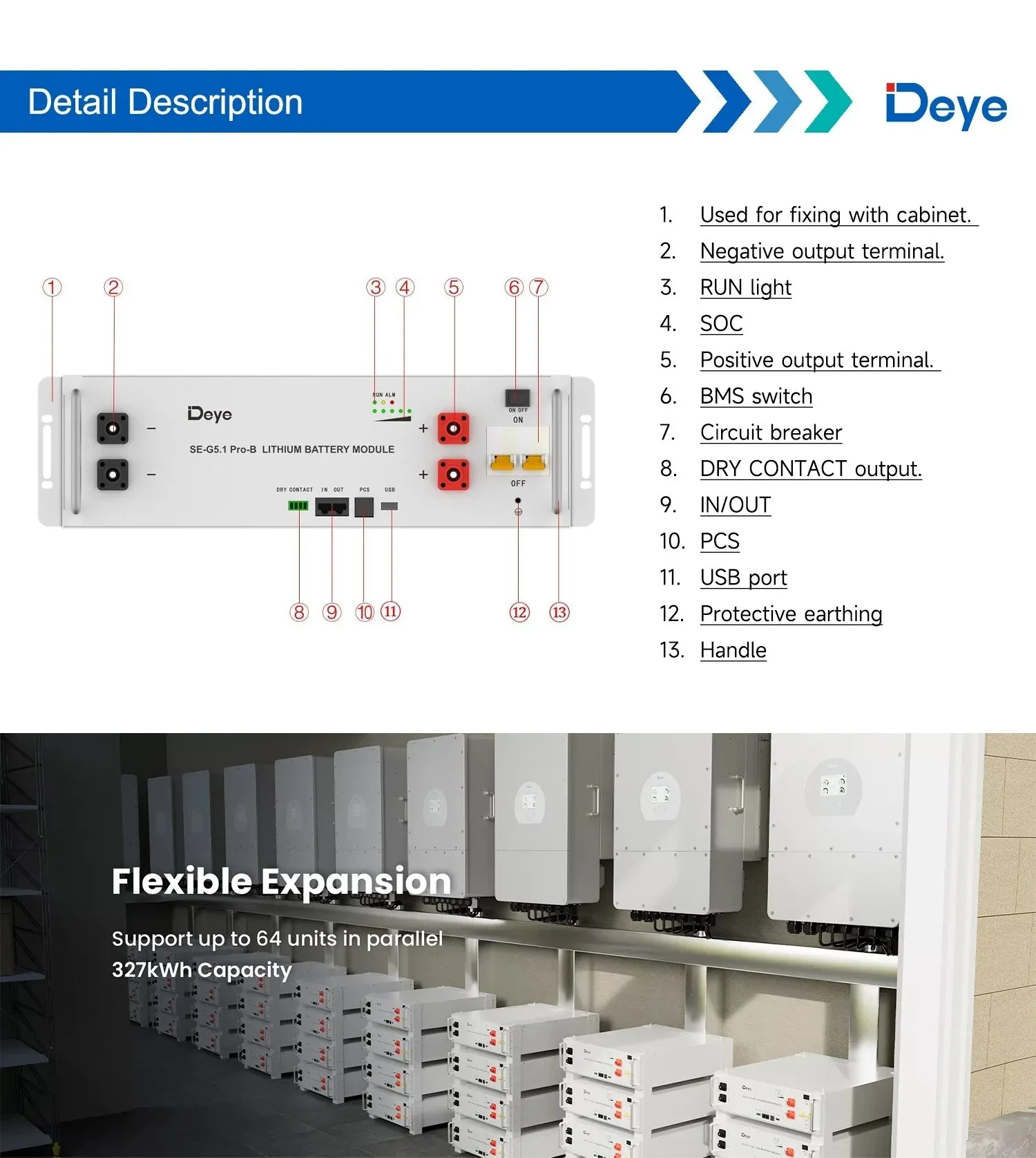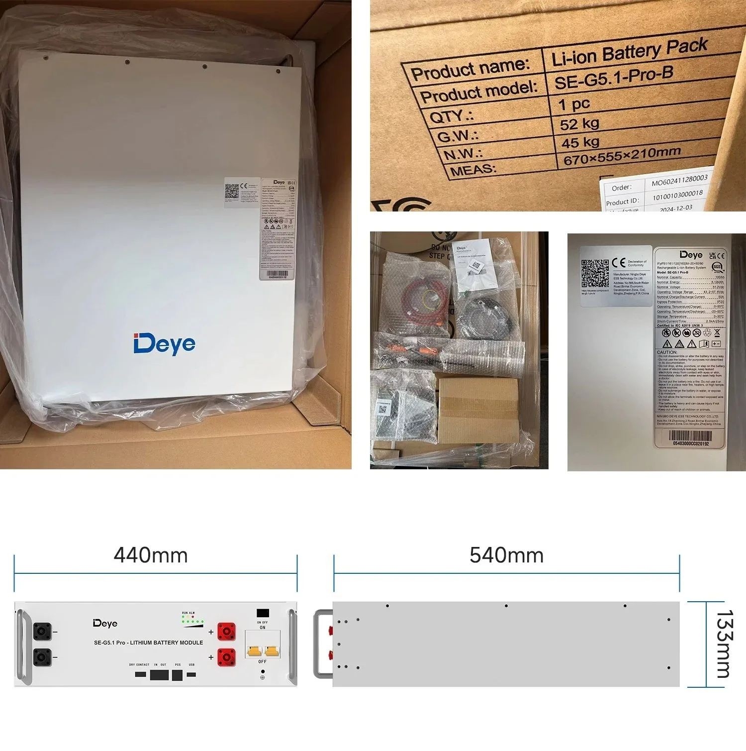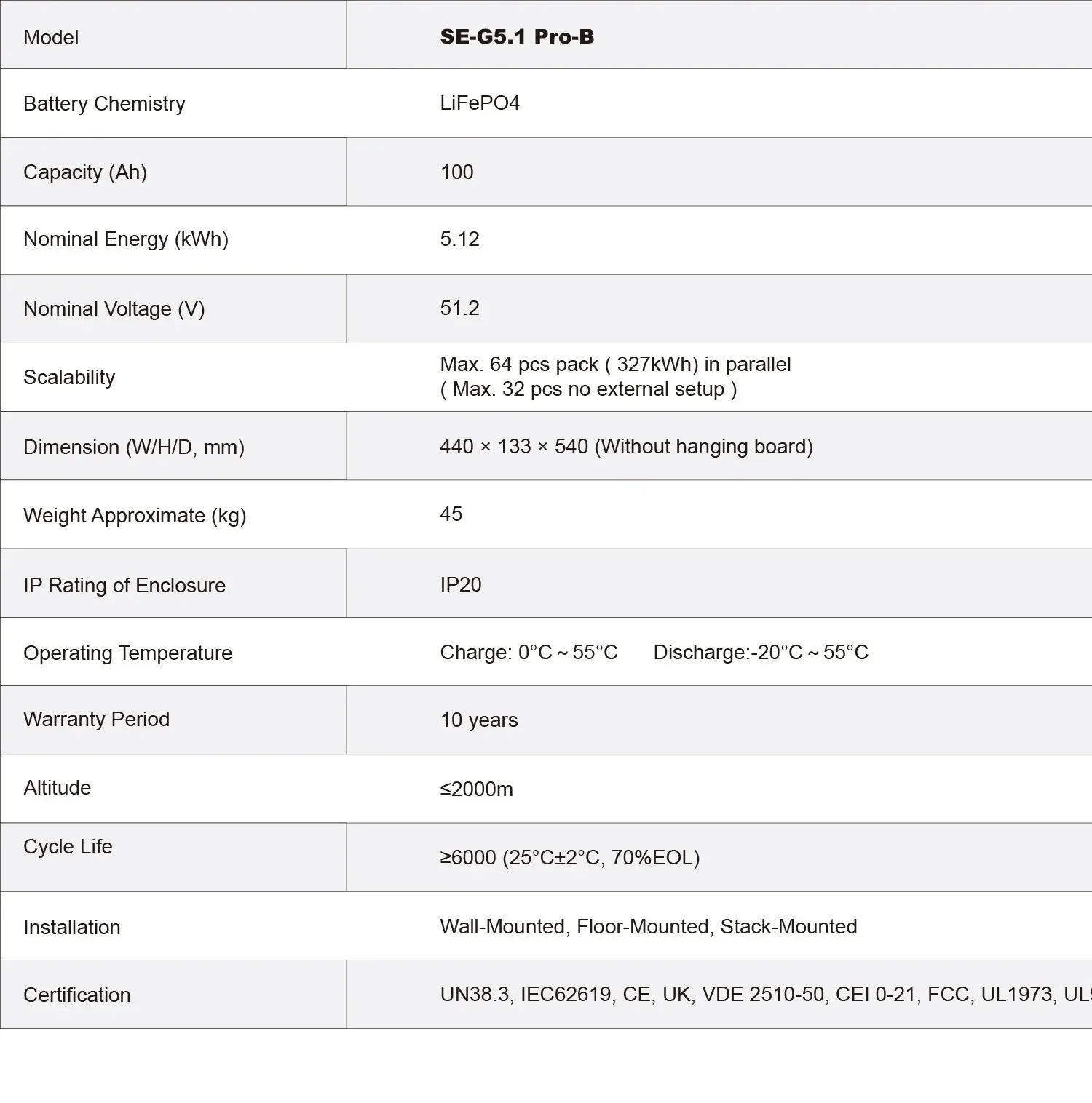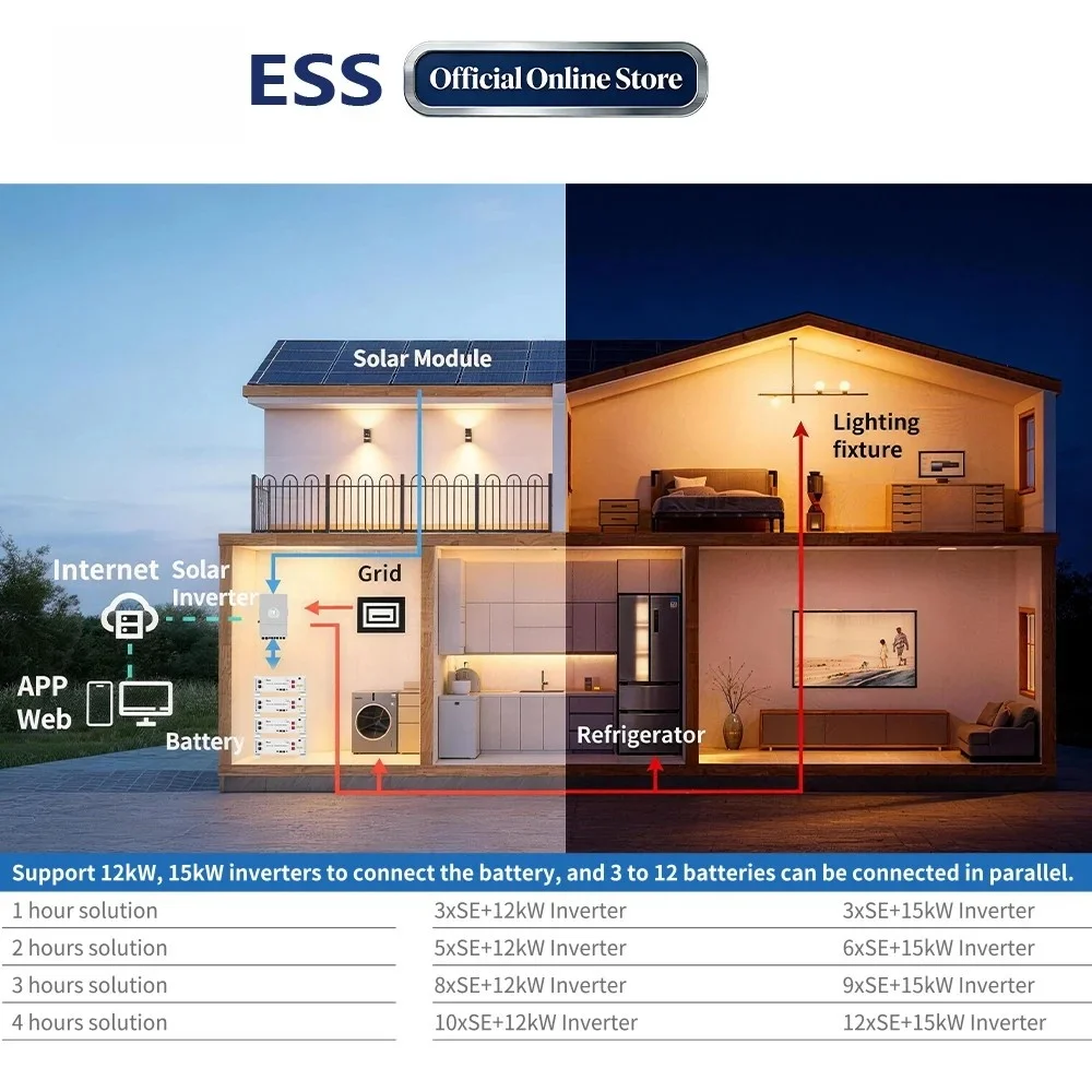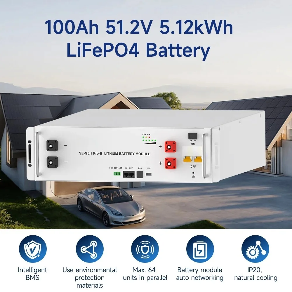 SE-G5.1 Pro-B, літієва акумуляторна батарея, 51,2 В, 200 А·год, 500 А·год, тривалий термін служби, комплект акумуляторів потужністю 10 кВт·год, 20 кВт·год для системи зберігання енергії (ESS), наявність на складі, монтаж у стійку, ступінь захисту IP54, автономна робота
