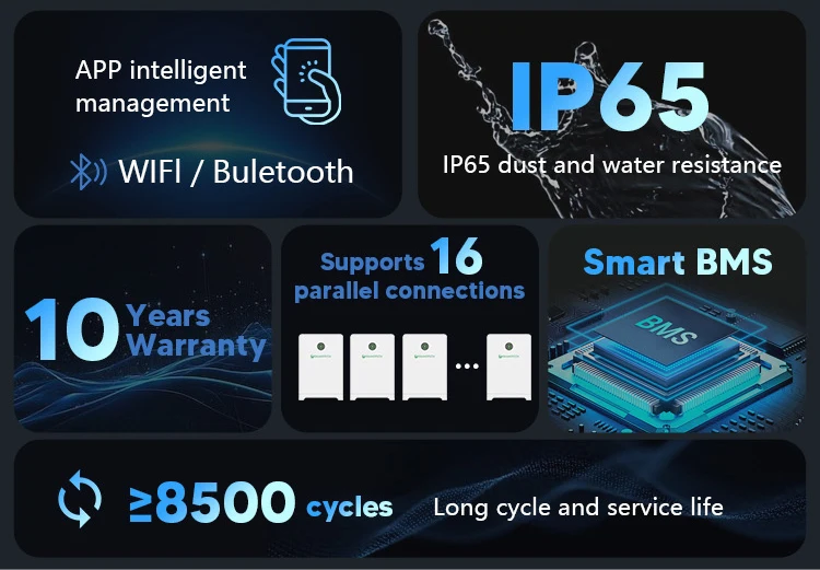 Uzoq muddatli zaryadlash/bo'shatish tsikllarini qo'llab-quvvatlaydi 8500 ta tsikl @ ≥80% sig'imi saqlash